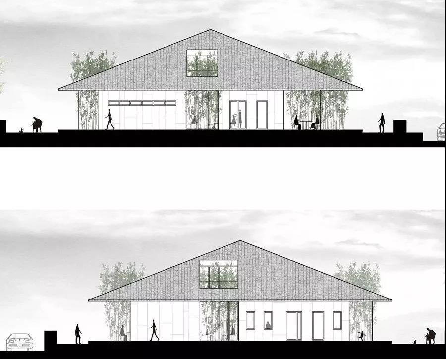 由此引發了我們最本能的想法:營造一個“包容一切活動的瓦屋頂”,籍此去連接詩性的傳統與互聯的未來社區。既營造了“同在屋檐下”的一種身份認同,又讓人們走出來、讓行為發生、從空間層面進行軟性的公共治理,從而逐漸孵化出未來的鄉村社區模型。