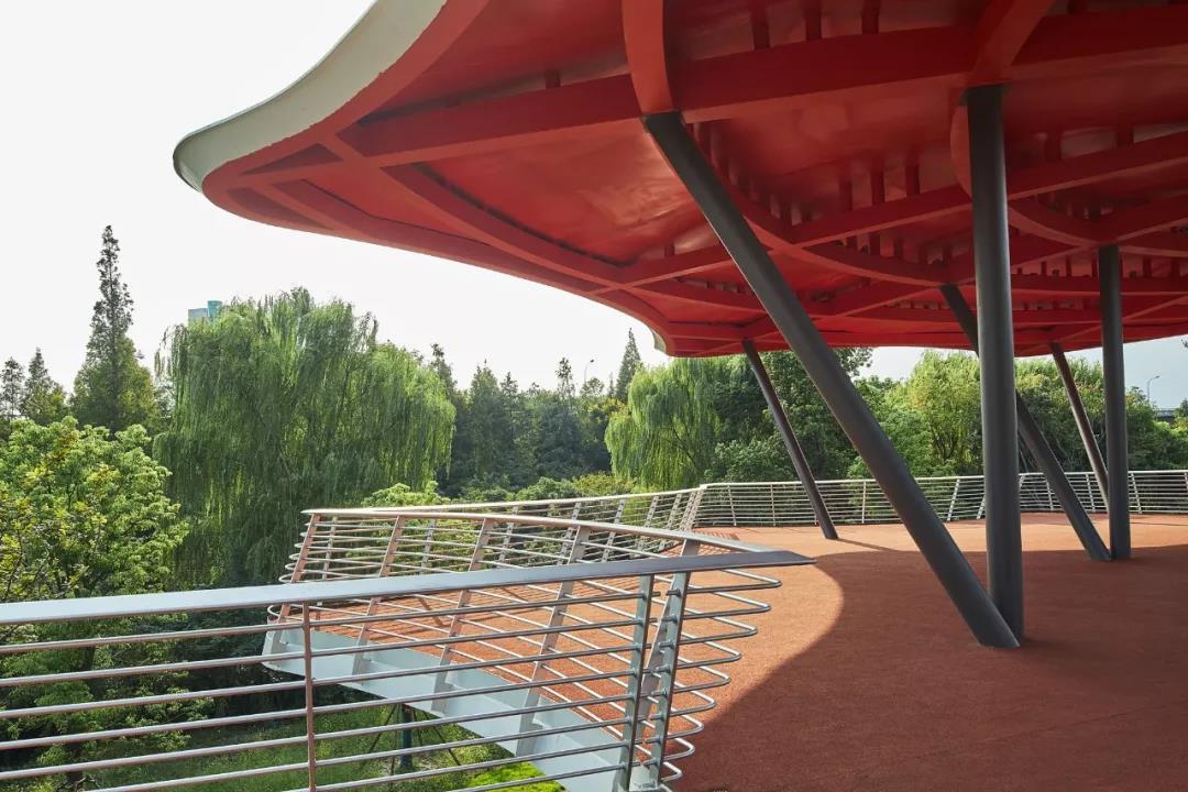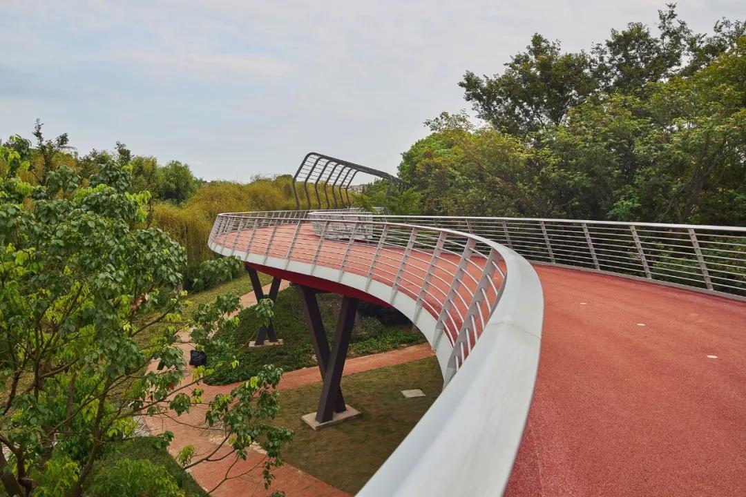 綠道全程采用鋼架與預制件建造,從而降低對公園生態的影晌。
