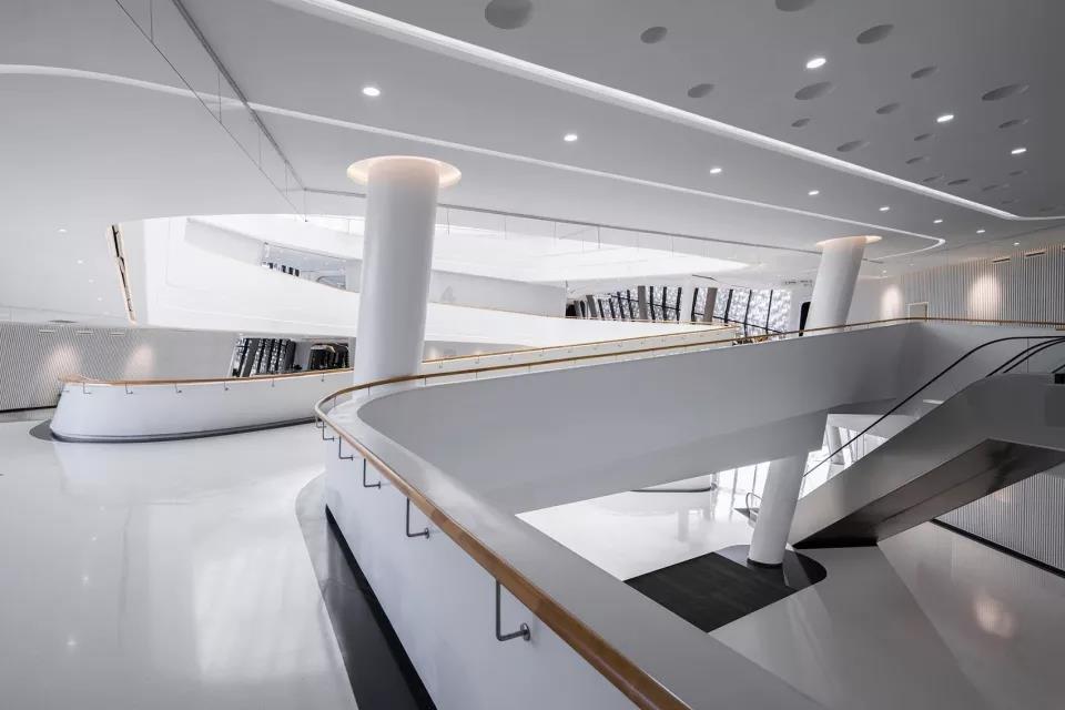 展覽空間主要位于展館的三層和四層。一二兩層容納著各種公共空間如餐廳、圖書館、閱覽區(qū)、一系列聚會區(qū)、兒童教育空間和游樂場、教室以及大型的多功能活動廳等。展館的屋頂上設(shè)置著一間咖啡廳,游客們可以在此放松身心、欣賞周邊的城市景色。