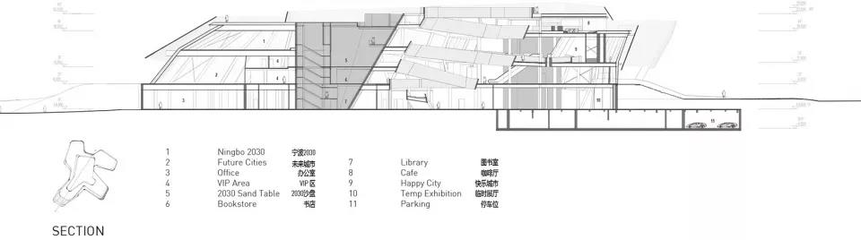 隨著城市的迅速發(fā)展,很多大城市都出現(xiàn)了一種特殊的展覽館——“城市規(guī)劃博物館”,以便于向公眾展示城市發(fā)展在現(xiàn)階段已經(jīng)取得的成就。寧波市城市展覽館并不只是一個展覽空間,它更為城市化進程中的所有利益相關(guān)者提供了一個聚集地。它將市民、兒童、城市規(guī)劃方面的專業(yè)人士、專業(yè)學者、公務(wù)員和政府人員等對空間的需求結(jié)合在了一起,在城市新區(qū)內(nèi)創(chuàng)造出一個引人入勝的公共空間,從而促進了市民與城市管理者之間的對話。