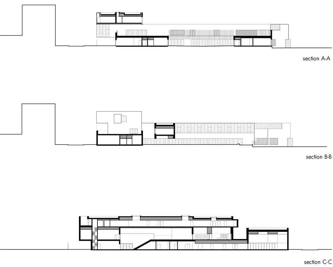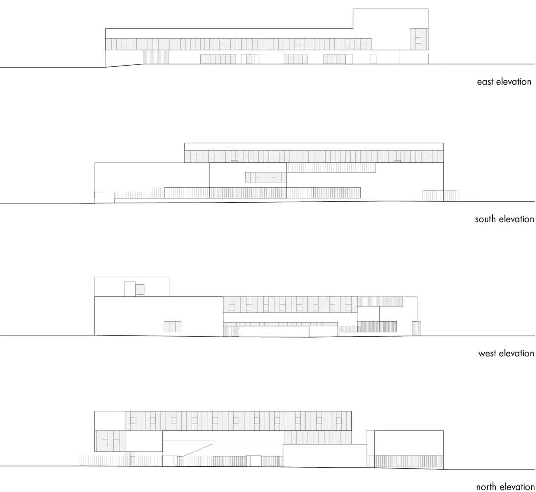 建筑擁有高度統一的外觀,且明確地展示出其公共設施的身份。學校的教室沿著40米長的場地分布,仿佛坐落在一座橋上。