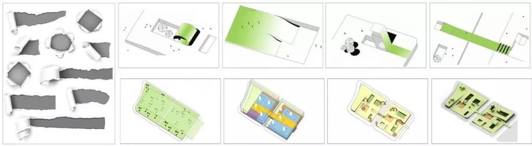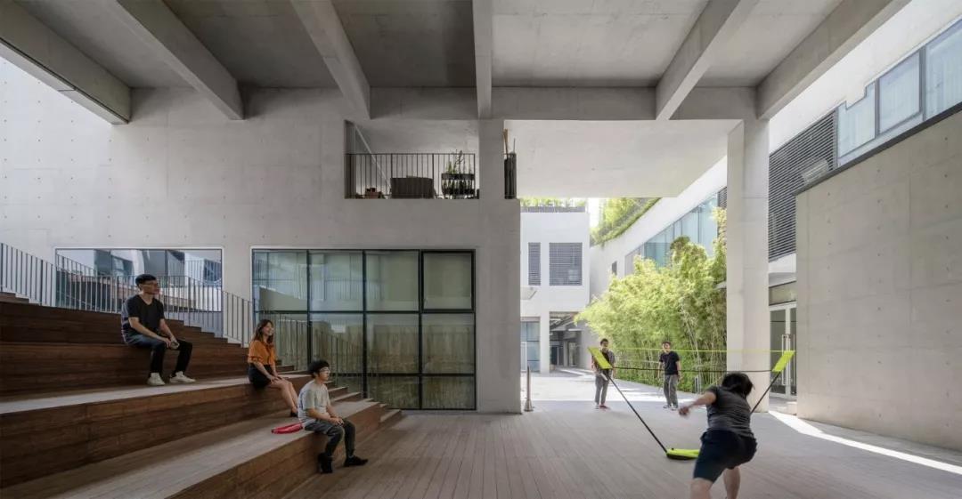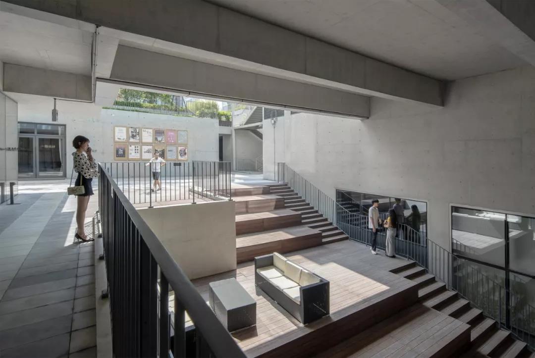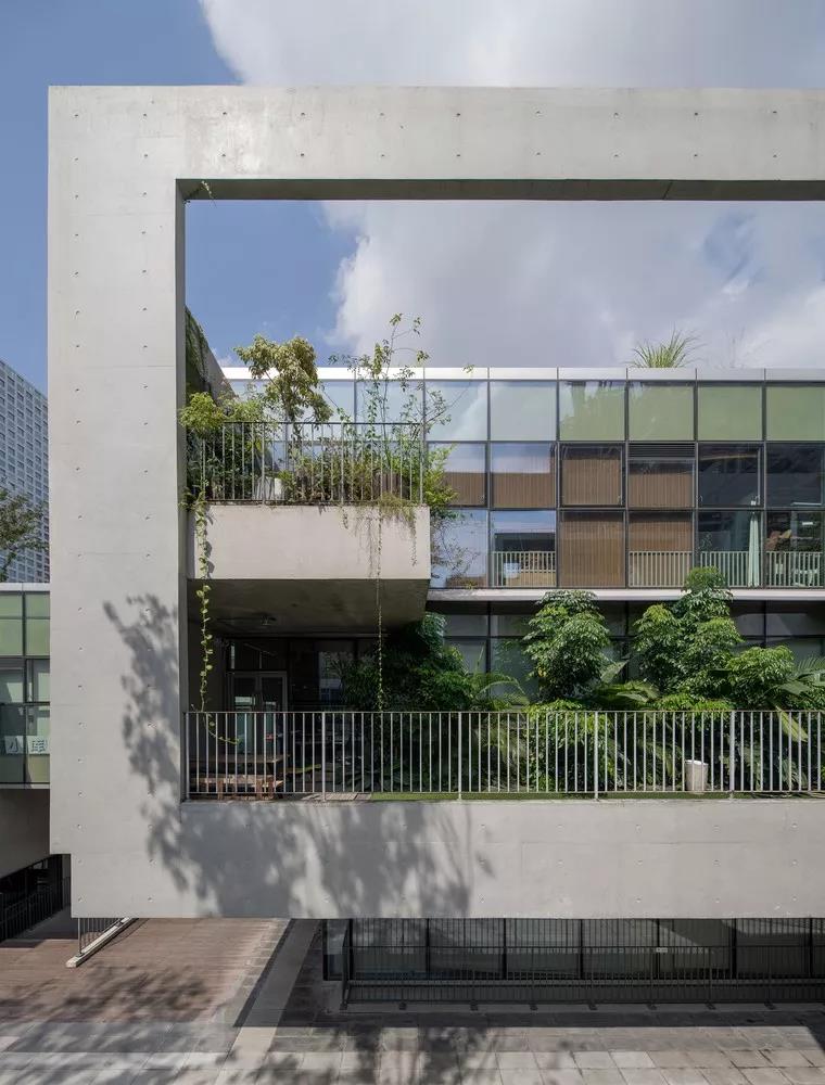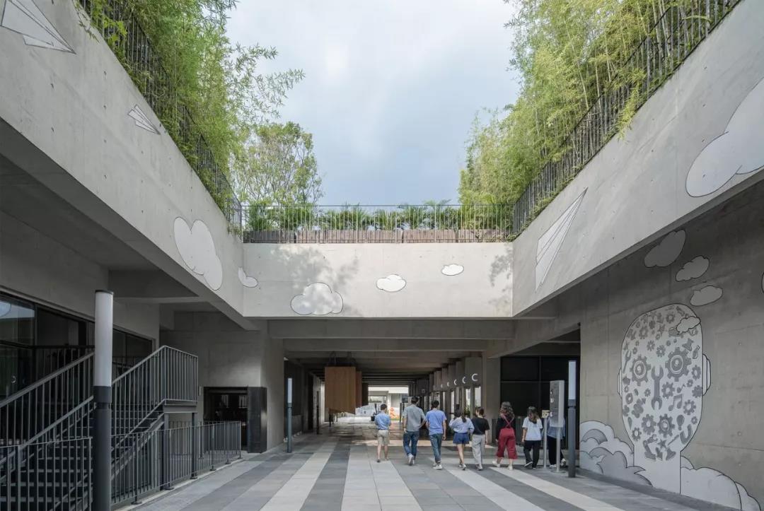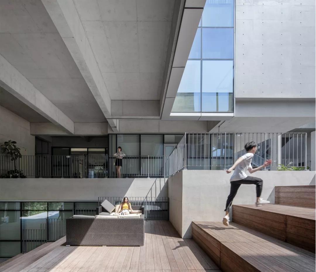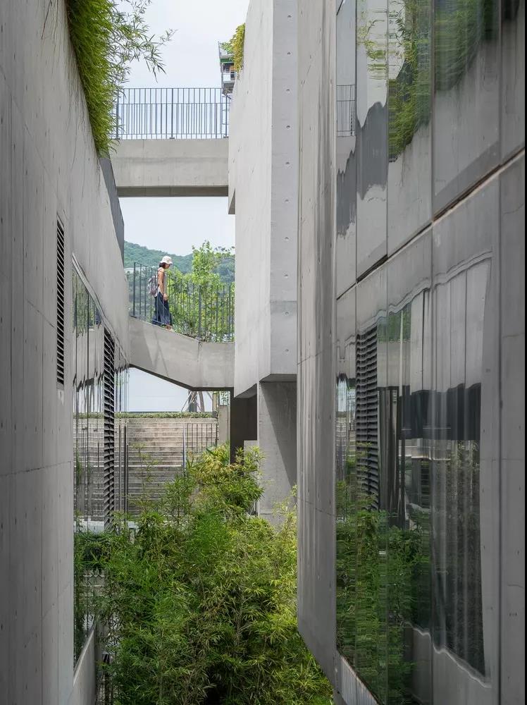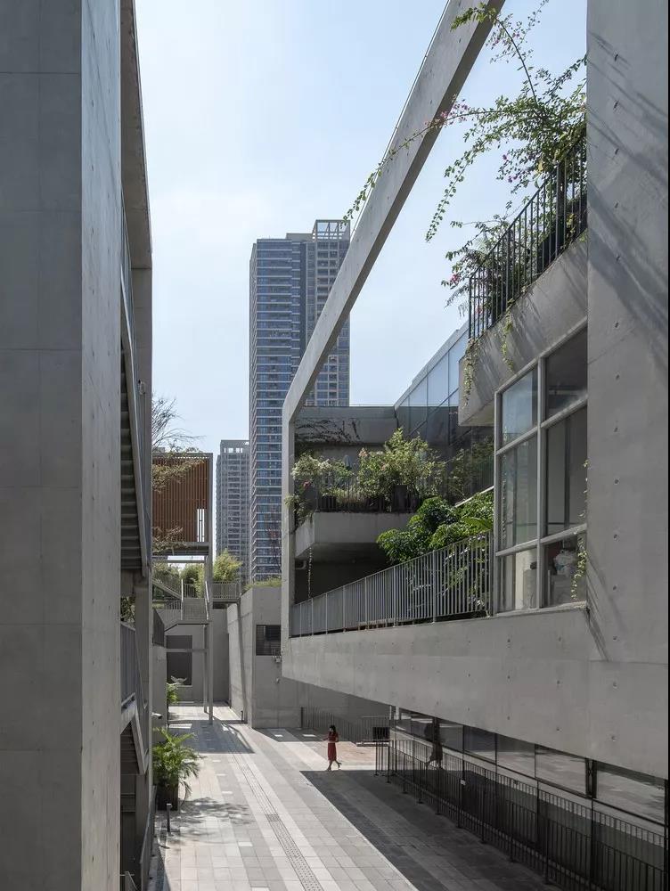細高而狹窄的通道既有冷巷的功能,又形成城中村式的親切感。這些空間大小錯落,四通八達, 內外交融,和北綠廊社區的空間肌理自然融合,形成豐富的游走體驗,充滿了轉過街角的偶遇。為入住的創意設計公司群落提供富有想象力的辦公環境。