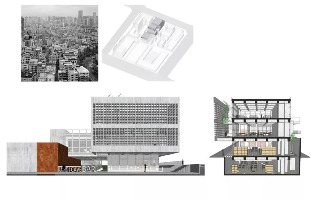 留仙洞北綠廊設計公社以集群方式快速形成城市的多樣性。以產業鏈為線索形成有社群黏度的設計公社。在都市實踐的城市設計指引下,來自深圳,上海和北京的多個團隊共同設計了這一項目。用地被劃分為若干密集的小地塊,UV/華藝團隊負責了其中三個地塊,包括辦公、機械式停車庫、公交首末站等靜態交通設施。