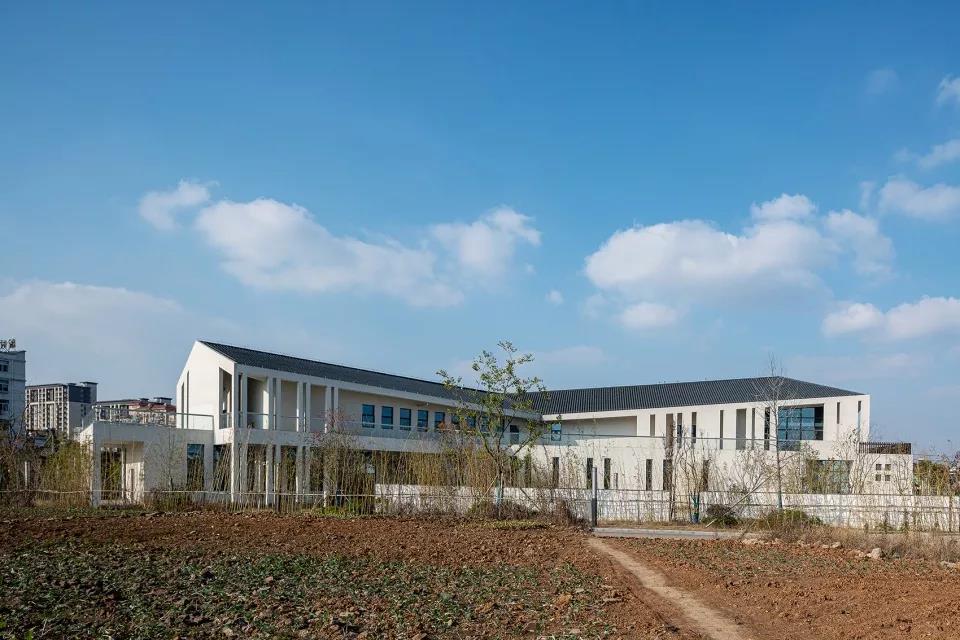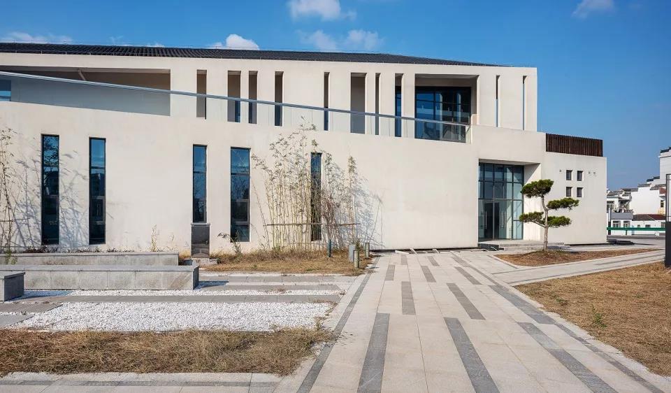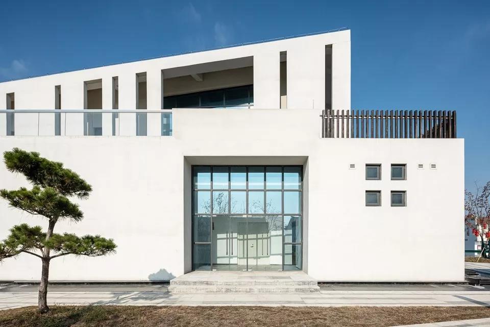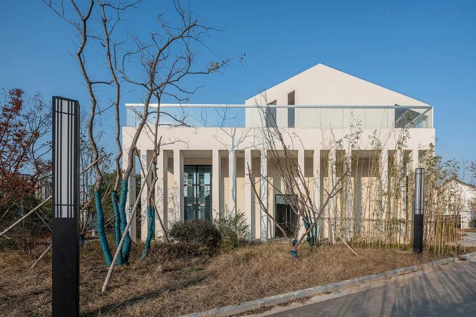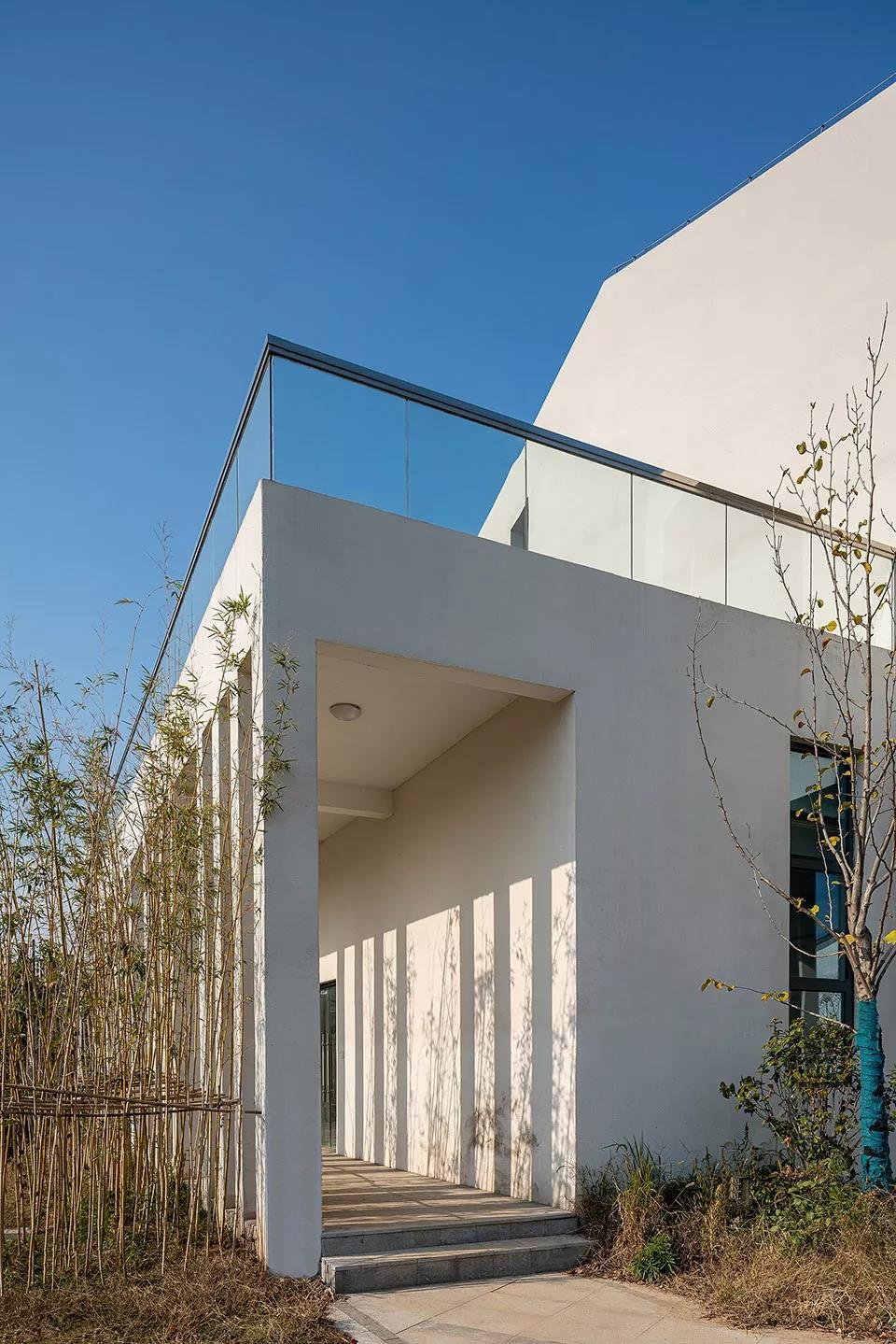 在空間上注重室內(nèi)外的交融和內(nèi)部空間的流動(dòng),也引入了傳統(tǒng)建筑中“廊”這一經(jīng)典元素。在細(xì)部構(gòu)圖中借用了“飛白”的墨法,不同的檐廊的邊界做了不同的造型設(shè)計(jì),或是雙柱,或是四柱,又有寬窄不一的片墻組合。不同形態(tài)的柱廊完形了建筑體量,更使得建筑形態(tài)有了豐富的虛實(shí)關(guān)系和光影變幻的立面效果。