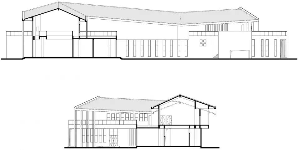 ▼主館南立面,不同的檐廊的邊界做了不同的造型設(shè)計(jì)