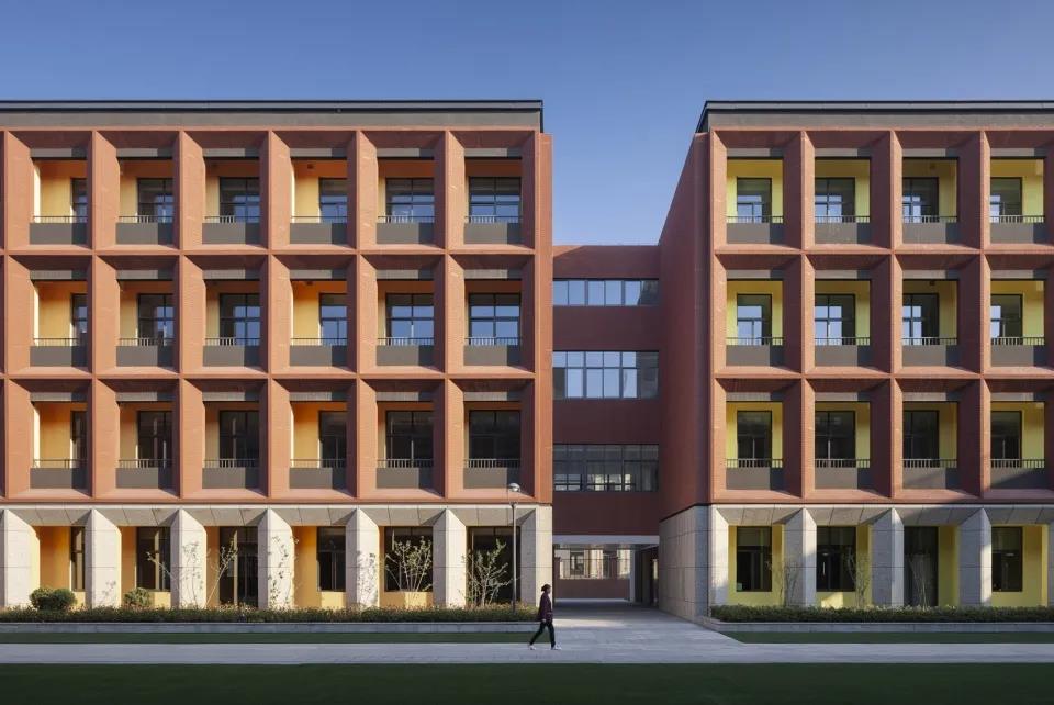 在“公學”、“藝苑”、“方山”、“智城”這四個關鍵詞中,“公學”指代校園文脈。這所國際化學校對傳統西方公學的人文精神、校園空間和場所尺度中進行提煉和還原,并融合至中國及當代多元文化中,再現了一所“當代公學”。設計中以貫穿南外各校區的紅磚作為校園的基調色,在致敬南外歷史的同時也傳遞出濃郁的學院風格。