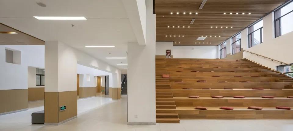 在場所和環境定位上,設計充分尊重“方山”的地形地貌,創造了兩條軸線的交融,營造各種不同標高的室內外非結構化學習空間,使得校園不僅是知識傳承的寶庫,還是文學藝術的薈萃處所。