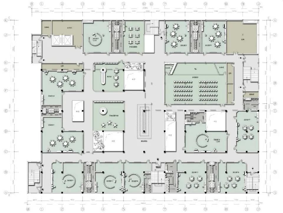 培訓(xùn)樓整體的規(guī)劃通過(guò)設(shè)計(jì)以大氣沉穩(wěn)又極富層次感的線性設(shè)計(jì)打造,極為吸睛的標(biāo)志性輪廓,借由這量體分割劃分出此空間的功能區(qū)域。讓步入空間的方式形成遞進(jìn)、轉(zhuǎn)換層次的變化。