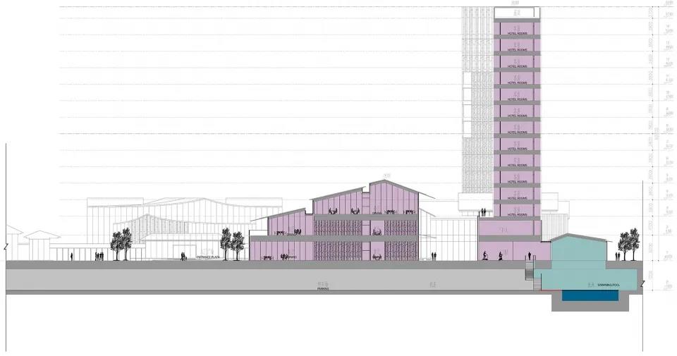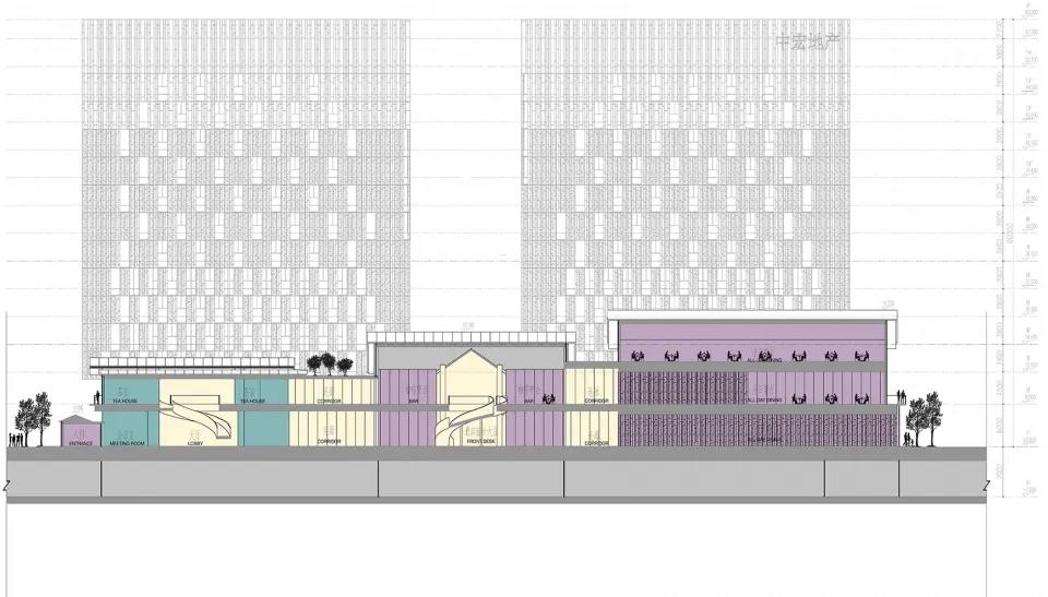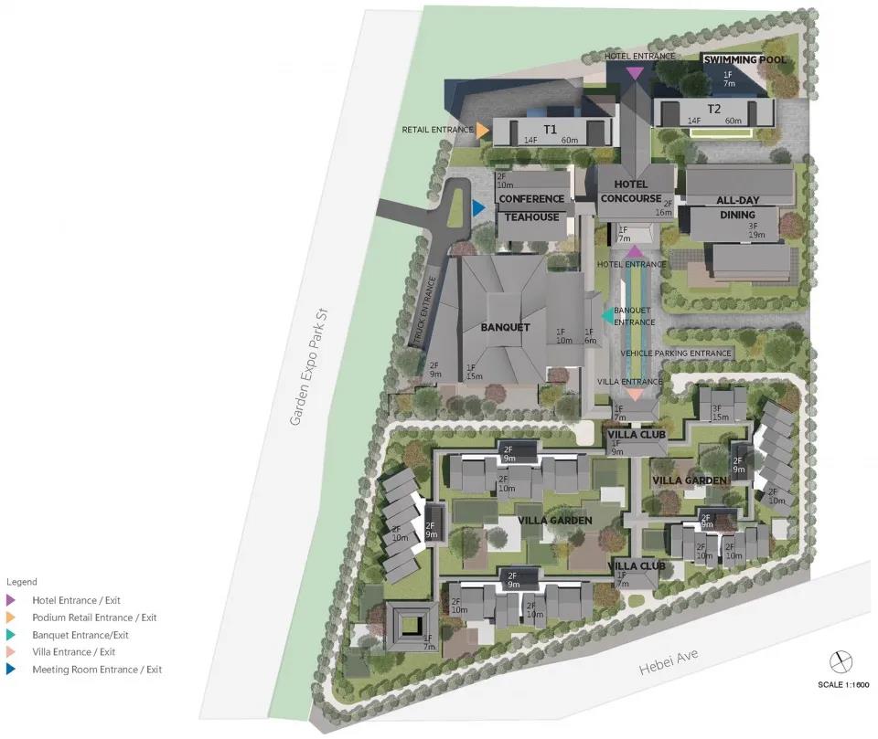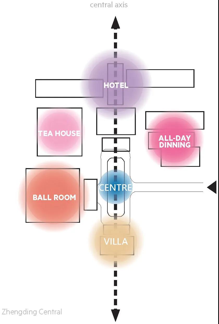 ▼中軸線布局的酒店,兩座酒店大樓置于總體規劃的北部