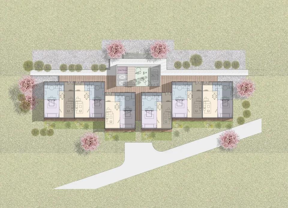 ▼別墅區總平面圖,雙層別墅群面向中央花園
