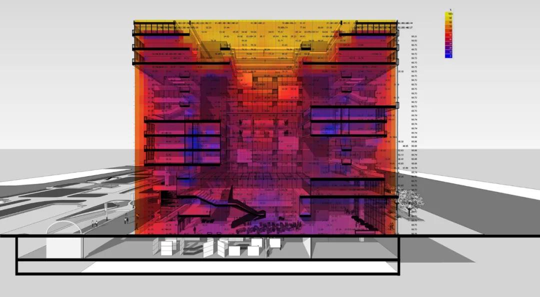 設計按照每三層共享一個大平臺的空間邏輯,隨著樓層的變化,依次在四個面的不通高度位置出現。我們在方案擴初階段采用ArchiCAD的BIM建模型方式,全部外墻圖紙由三維模型直接導出成圖,所有空調室外機以及頂板等二次結構一體澆筑成形。