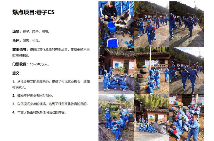 新山村在黨的十九大精神感召下,繼承和發(fā)揚(yáng)優(yōu)良的革命傳統(tǒng)和紅色精神,積極挖掘紅色文化資源,打造紅色旅游產(chǎn)業(yè)。同時(shí),結(jié)合社會(huì)主義新農(nóng)村建設(shè),充分利用新山村豐富的人文資源,講好新山紅色故事,寫(xiě)好新山紅色文章。并將農(nóng)會(huì)舊址、隊(duì)部舊址、烈士故居等紅色遺址納入新農(nóng)村建設(shè)的規(guī)劃,打造“紅色一條街”,建設(shè)一個(gè)集旅游休閑和紅色教育基地于一體的社會(huì)主義新農(nóng)村示范村。